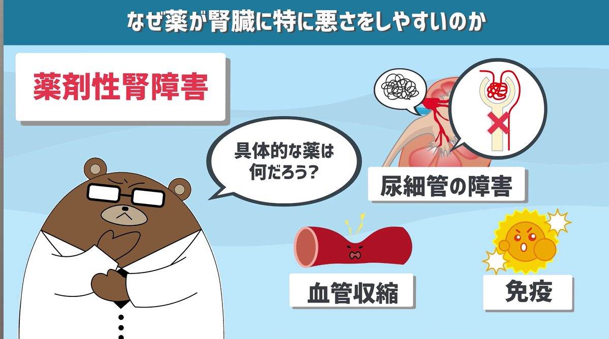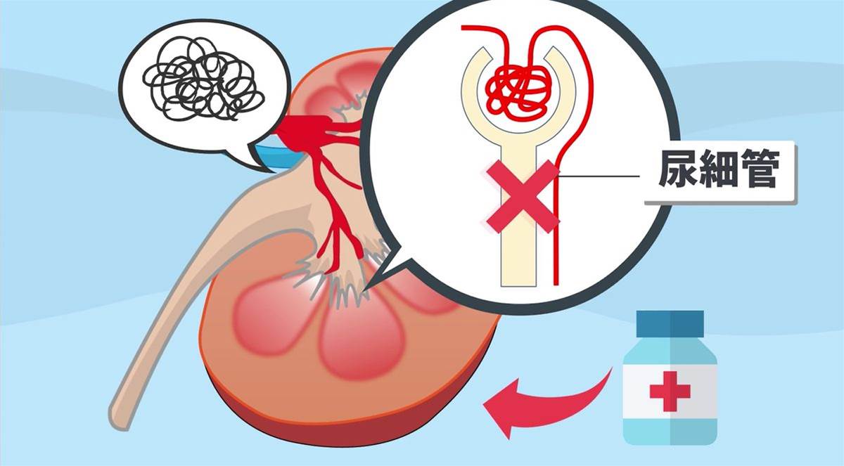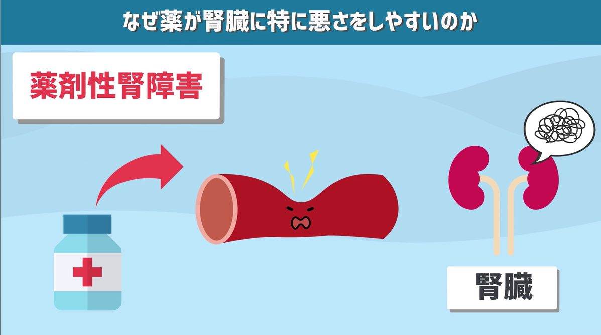薬の代謝産物が尿細管(おしっこの通り道)に蓄積し、詰まってしまうことで腎機能が低下することもあります。