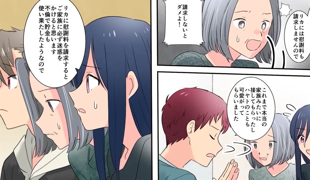 その後、理香の家族と朝日は話し合いを持ち、離婚を決断しました。子供の親権は朝日が持ち、理香は実家との関係を断たれることになりました。浮気相手には制裁が行われ、相応の慰謝料が請求されることになりました。