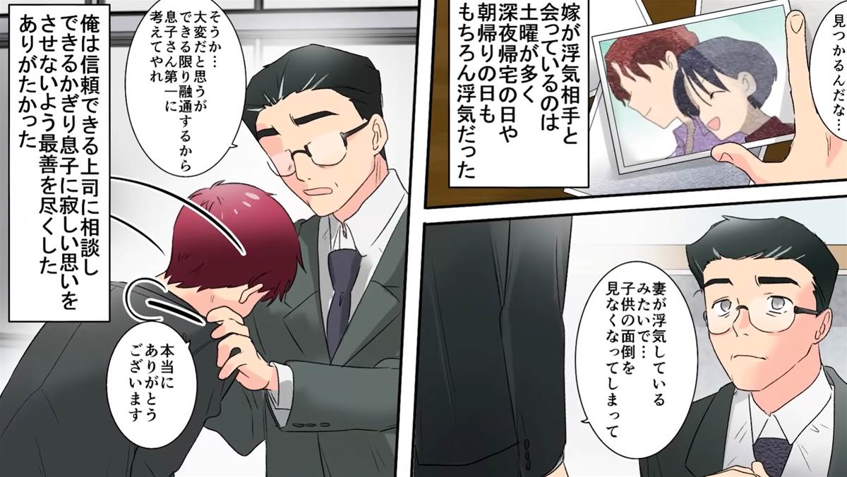 朝日という名の男は29歳で、同年齢の夫婦である理香と結婚し、3歳の息子を持つ父親でした。結婚してから4年、美しい息子も生まれ、幸せな家庭を築いていると思っていました。しかし、1年前から妻の理香が夜の関係を断るようになり、鈍感な朝日でもさすがに不自然に感じることが増えてきました。それは、週に一回の外食があったにしても、毎日出前を頼むのは母親としての責任を果たしていないのではないかと考えたほどでした。