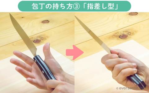 例えば、刺身を切るときに、この持ち方をすると、包丁がブレにくくなり、正確な切り身を作ることができます。さらに、中指と親指で包丁を握り、安定感を増すことができます。この持ち方では、力を入れすぎず、指先を使って包丁をコントロールするため、細かな作業が可能になります。