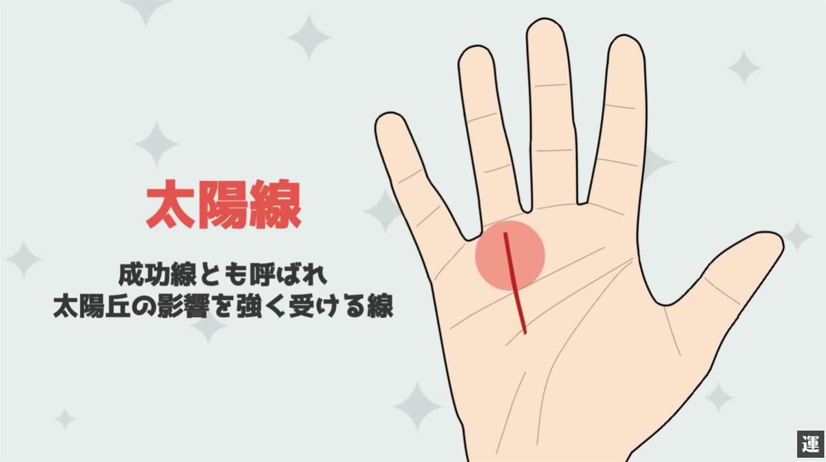 第9位に挙がるのは「太陽線」、別名「成功線」とも呼ばれます。この線があると、人気や名声を得やすく、幸福が舞い込んでくるとされています。特に、感情豊かで明るい性格の人に現れやすい線です。