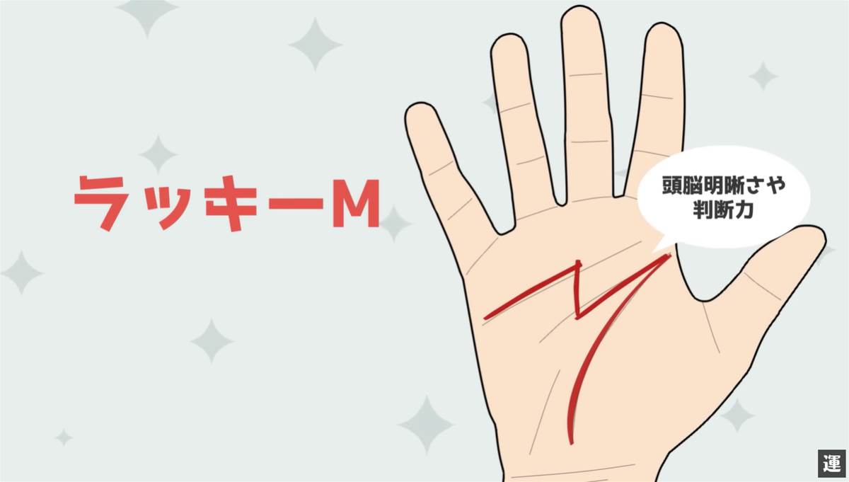 第7位の「ラッキーM」線は、知能線、感情線、生命線、運命線が見事に織り成すM字型の線です。これがあると、知力、感情、健康、行動力が絶妙にバランスして協調し、幸運を引き寄せるとされます。さらに、神秘的な力を宿す。