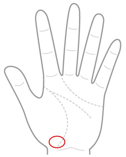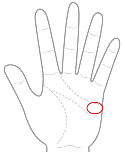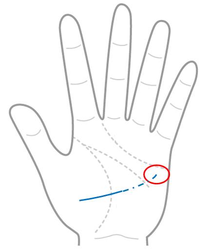 生命線内側から、手のひら中央やや人差し指側(以下、赤丸部分)に向かって伸びる線に注目してください。
