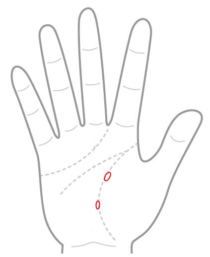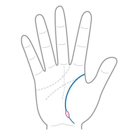 しかし、よく見てみると、彼女の生命線上の島は、生命線の下部ではなく、もう少し上の方にありました。