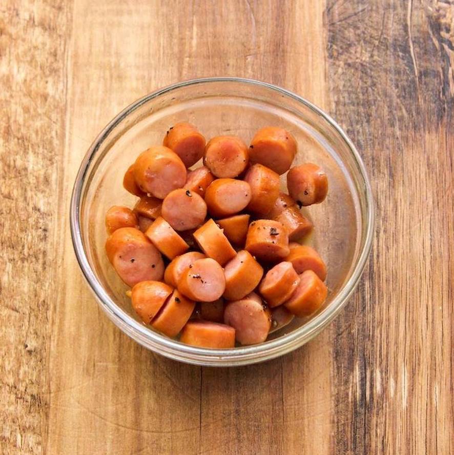 「ピリ辛ソーセージ」 → ラー油を少し加えることで、ピリッとした辛さが加わり、辛党の方におすすめの一品になります。