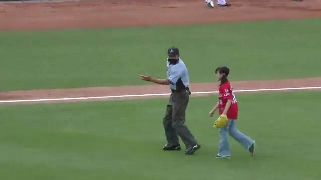 投球後、審判が彼女に近づき、ユーモアあふれるジェスチャーを交わす場面が見られました。審判はまるで「プロ級だ!」とばかりに親指を立て、その仕草に女の子は照れくさそうに笑顔を見せました。この微笑ましい光景に、スタンドの観客たちはさらに盛り上がり、温かな拍手が送られました。