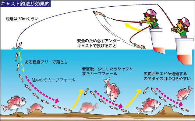 今回は、テンヤ真鯛釣りをさらに効果的に行うためのポイントを、アニメで解説します。特に、誘い方、遊動テンヤ、エビ餌の付け方などの実践的なコツを詳しく紹介します。これからテンヤ真鯛釣りを始める方や、より多くの真鯛を釣りたい方には必見の内容です。それでは、釣り方の詳細を一つずつ見ていきましょう。