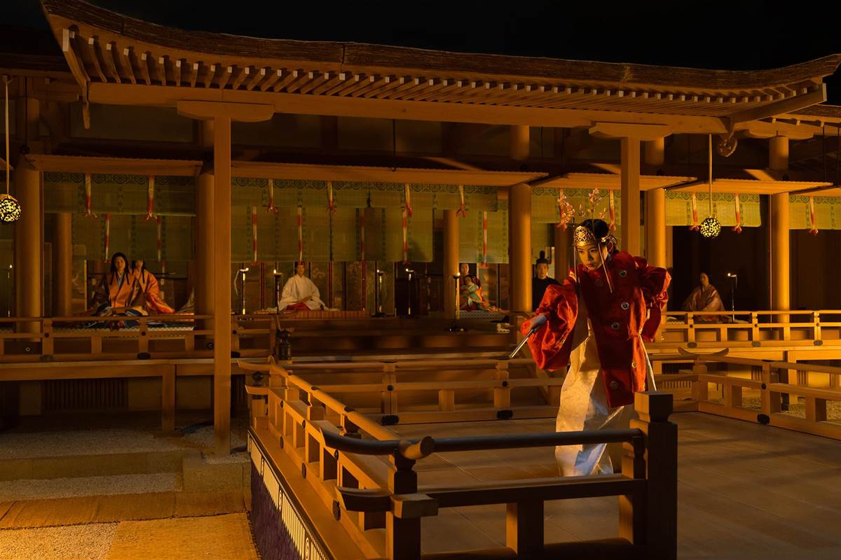 同じく土御門殿では、詮子(吉田羊)の四十歳を祝う儀式が盛大に執り行われます。しかし、詮子の身体は弱っており、その健康状態が心配されます。この儀式のシーンでは、道長と倫子(黒木華)の子である田鶴(のちの藤原頼通/三浦綺羅)と、道長と明子(瀧内公美)の子である巌君(のちの藤原頼宗/渡邉斗翔)が舞を披露します。田鶴の舞に感心していた道長でしたが、続く巌君の舞はそれを上回るものであり、明子は得意満面の様子です。