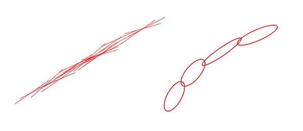 鎖状の線に対して、「グシャグシャしていてスッキリしていないから、悪い意味を持つ」という説もありますが、いけのりさんはそうは思いません。むしろ、鎖状の線は、その人の人間臭さを表していると捉えています。完璧ではない、どこか不器用な部分こそが、その人の魅力を形作っているのかもしれません。