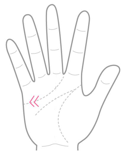 ② 感情線の起点部分に”く”の字の形で現れる線