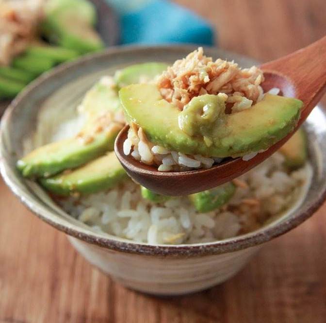 もし、ご飯にのせて食べたい場合は、上記のサラダに白ご飯を加えるだけで、「アボカドツナ丼」に早変わりします。