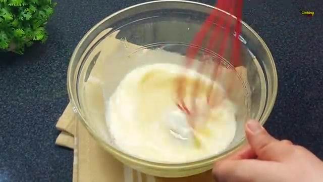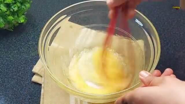 次に、彼女は卵を一つだけボウルに割り入れました。砂糖を少量加え、ふんわりと泡立つまでかき混ぜます。ここがポイントです。卵と砂糖をよく混ぜることで、デザートに軽やかな食感を生み出すことができます。