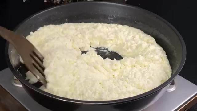 牛乳が固形物と液体に分離したら、火を止める。ガーゼや清潔な布で濾し、余分な液体を除く。ボウルに移し、塩を少々加えて完成。