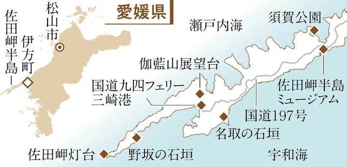 佐田岬半島は、瀬戸内海と太平洋を分ける重要な地理的な役割を果たしています。右手には穏やかな瀬戸内海、左手には荒々しい太平洋の海域が広がり、その景色はまるで二つの異なる世界を見ているような錯覚を覚えます。