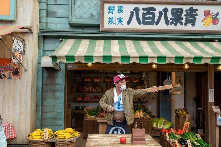 昭和の街並みを歩いていると、八百屋がバナナの叩き売りを始めたり、巡査が泥棒を追いかけながらパルクールを披露したりと、驚きのライブ・パフォーマンスが次々に繰り広げられます。