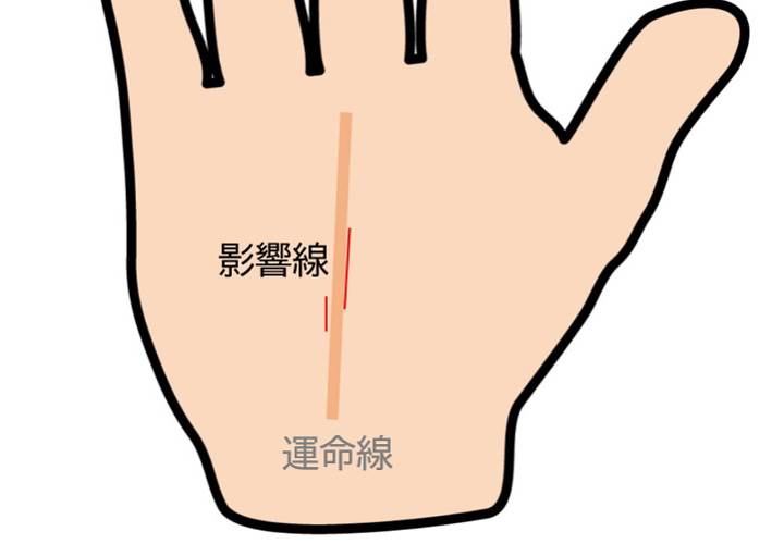 運命線の横に出ている影響線は、あなたの仕事や人生全般をサポートしてくれる、心強い味方の存在を示唆しているとされています。