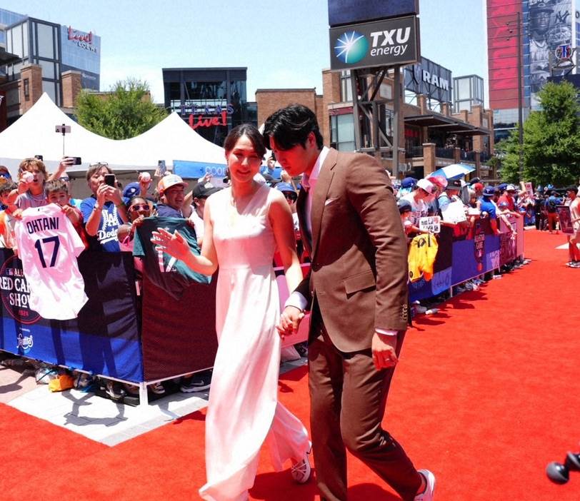 真美子夫人がウォールスター戦のレッドカーペットショーに参加した際、彼女のファッションは多くの人々の目を引きました。身長180センチという長身でありながら、約193センチの大谷選手と並んでもその存在感は圧倒的でした。彼女は片部分がシースルーで背中が開いたノースリーブの白いパンツドレスを選び、そのスタイルは会場を沸かせました。
