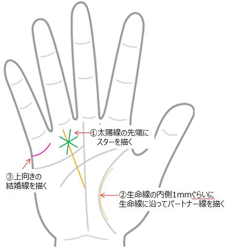 生命線の内側にパートナー線を描く!