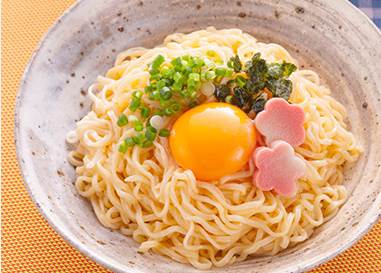 3. 卵を麺にかける
