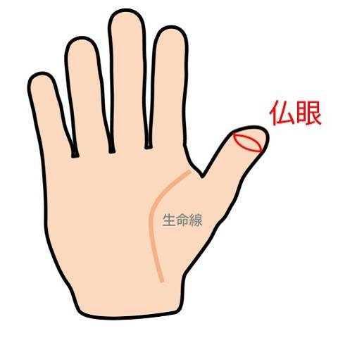 親指の腹側、第一関節に現れる目の形をした手相。それが「仏眼」です。この仏眼を持つ人は、直感力に優れ、霊感があり、守られていると言われています。