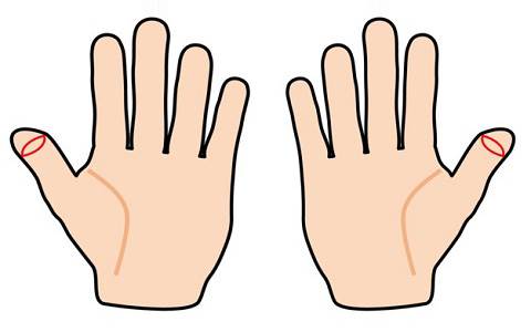 さあ、あなたの親指をチェックしてみましょう!手をひらいて、親指の第一関節を見てください。まるで白眼のように見えるシワはありますか?線が端と端でちゃんとくっついて、きれいに閉じられているのがポイントです。