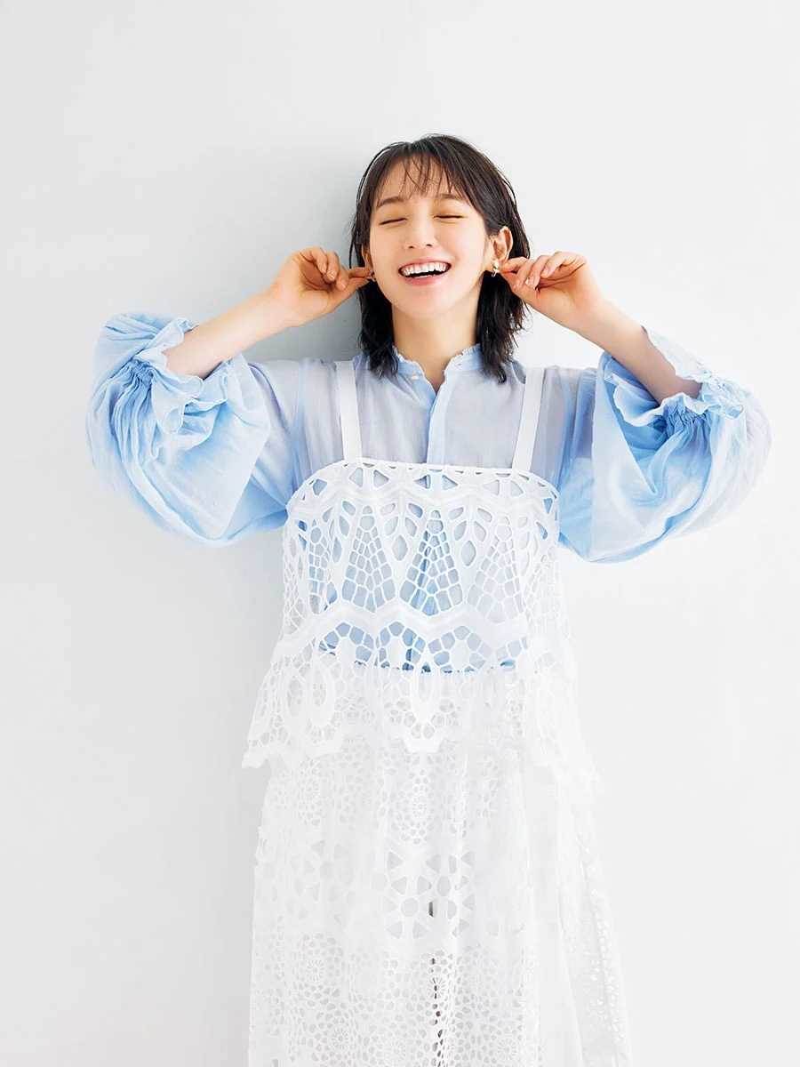 さらに、色とりどりの春ファッションを着こなした吉岡さんの素敵なカットも多数掲載。ピンクのワンピースやブルーのシャツなど、春らしい装いを軽やかに着こなす姿は、見ているだけで心が躍ります。
