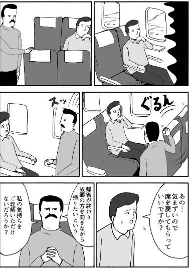 数分後、キャビンクルーの主任・エマが登場し、「お席の移動をご検討いただけませんか? 快適なお席をご用意いたします」と“丁寧に”圧力をかけてきた。