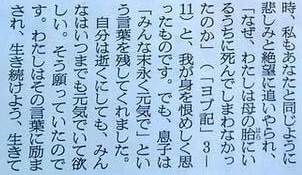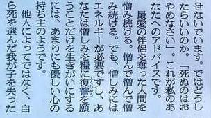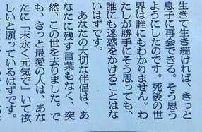 それでも尚、前を向いて生きているのは亡くなった息子さんが残してくれた「末永く元気で」という言葉があったからと言います。