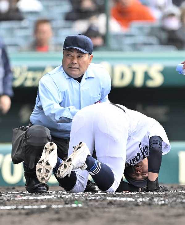 試合が進行する中、宇治山田商業の中川選手が打席に立ちました。ピッチャーから放たれた速球が中川選手の頭部に直撃し、その場で倒れ込みました。観客席からは悲鳴が上がり、グラウンド上は一瞬にして静まり返りました。