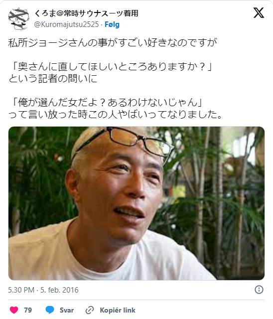 所ジョージさんは記者から「奥さんに直してほしいところありますか?」という問いに対し、「俺が選んだ女だよ?あるわけないじゃん」と答え、自ら選んだパートナーを全て含めて受け入れる姿勢を見せました。彼の愛妻家ぶりは他にも多くのエピソードで表れており、「この人と一緒にいたら、この先厄介なことがたくさん起こって楽しそうだから」と冒険心を感じさせます。
