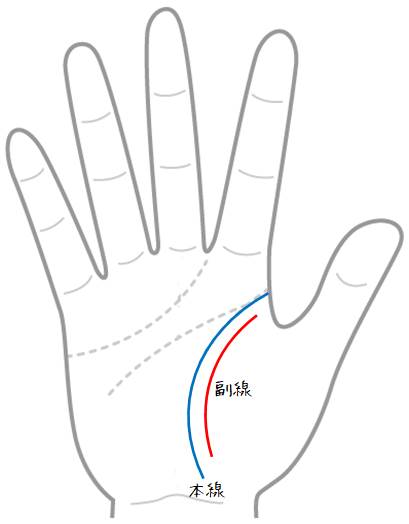 この本線と副線を合わせて「二重生命線」と呼びます。手相における開運線や恋愛線、障害線などの流年を観る場合は、外側の本線を参考にします。