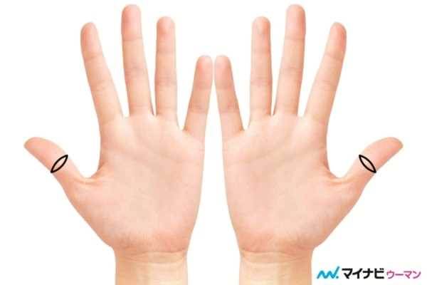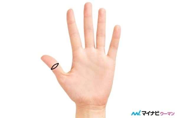 仏眼とは、基本的に親指の第一関節が、目のような形で囲まれているものを指します。真ん中がふっくらとした楕円形で、その形が仏像の半眼に似ていることから、この名前が付けられました。