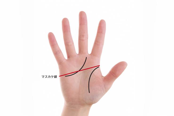 「マスカケ線」…別名「天下取りの相」。生命線を起点に手のひらを横一直線に貫く珍しい手相です。この線を持つ人は、一度掴んだ運は絶対に離さない、強靭な意志と行動力の持ち主と言われています。