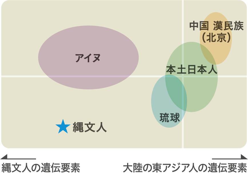 DNA解析の結果、縄文人の遺伝子と弥生人の遺伝子ははっきりと異なることが確認されました。縄文人の遺伝子は、主に東アジアの他の民族と共通点が少なく、むしろ東南アジアやチベットなど、遠く離れた地域の人々との関連が見られる一方、弥生人は南中国のチョウコウ流域からやってきたことが明らかになりました。