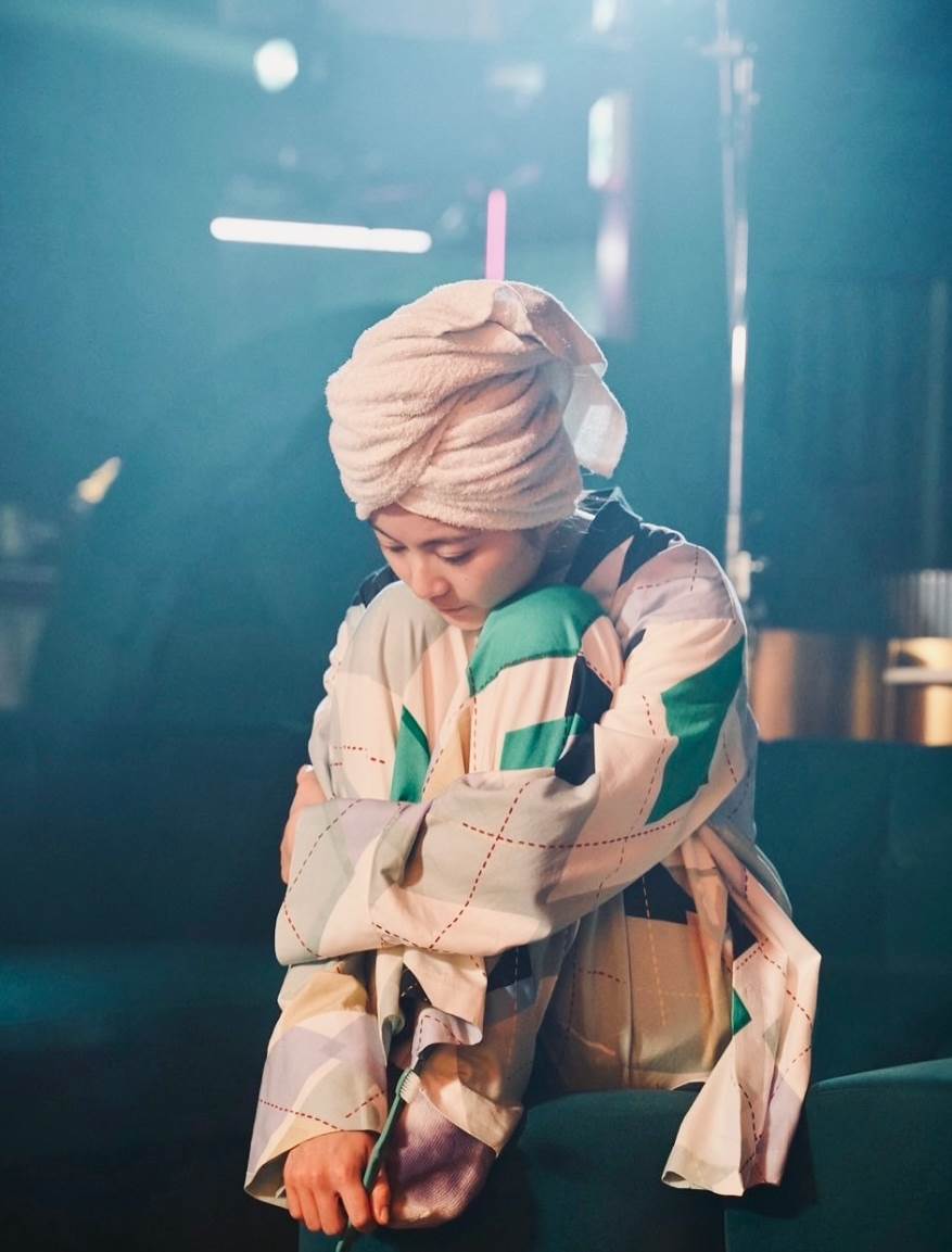 そして、公開されたのは、そんな日常感溢れる写真だけではない。ふとした瞬間に見せる、不意を突かれたような表情や、体育座りで静かに佇む姿など、撮影の合間に撮られたと思われる、よりプライベートなオフショットも公開されたのだ。