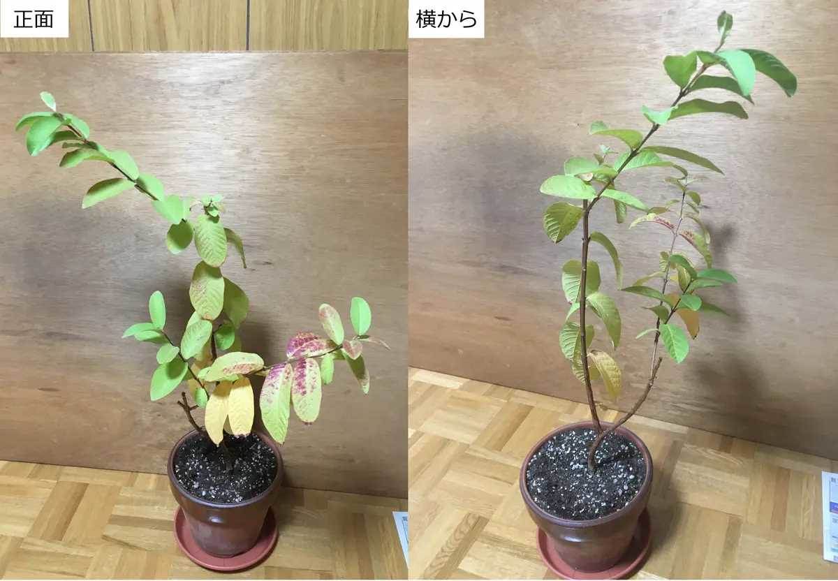 今回剪定するのは グアバの木。この木は 約3メートル以上の高さ になっており、放置するとさらに高く成長してしまう状態です。そこで、以下の方針で剪定を行います。