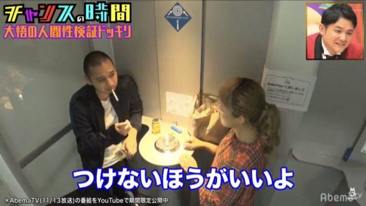 仕掛け人はタレントの丸山桂里奈。喫煙所にいる大吾に持ちかけるというシチュエーションでドッキリは始まりました。