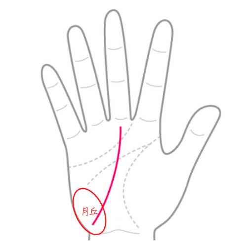 月丘の上部、下部に関わらず、月丘から伸びる運命線を持つ人は、他人から助けられたり、他人に引き立てられて運気が上がる運命を持つと言われています。
