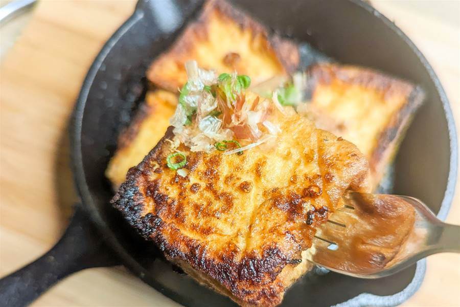 バターとガーリックの香り:バターとガーリックが焼き上がった厚揚げにしっかり染み込み、コクと風味が増します。特にバターは、ガーリックとの相性が抜群!