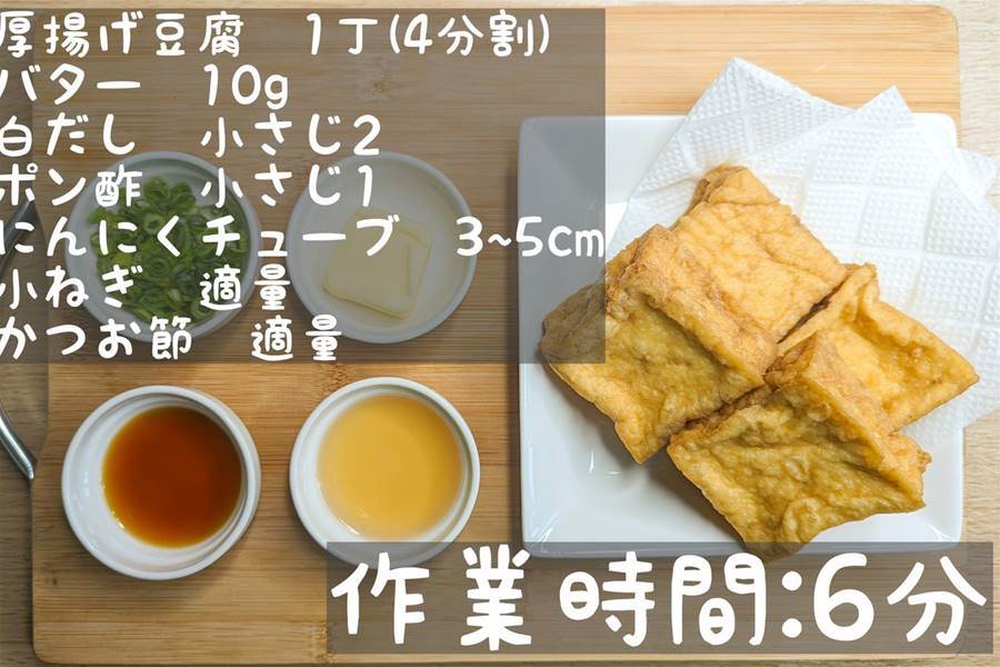 ヘルシーな食材:厚揚げは大豆製品なので、植物性タンパク質が豊富で、ダイエット中にも嬉しい食材。バターのコクがあっても、ヘルシー感を損なわずに食べられます。