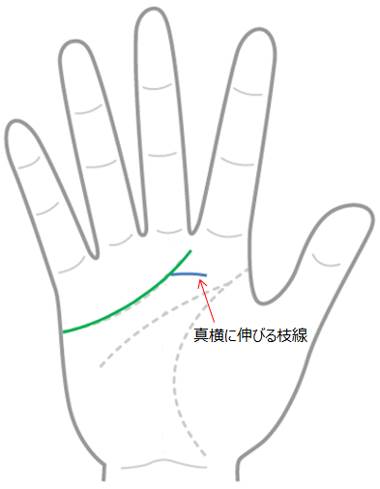 感情線の本線が、弧を描いた曲線で伸び、その枝線が真横に伸びている場合、その人は人付き合いの面で常識的で誠実な人である可能性が高いと言えます。これは、枝線が真横に伸びていることが、感情を抑制していることを示唆しているからです。