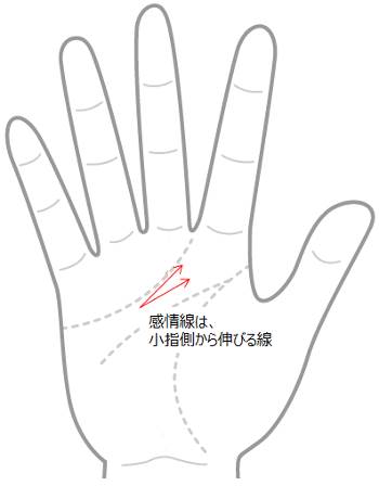 感情線が、木星丘(人差し指の付け根の膨らみ)まで届いていない場合、恋愛に対して真面目な考え方をする傾向があり、少し奥手で堅物な一面があるかもしれません。
