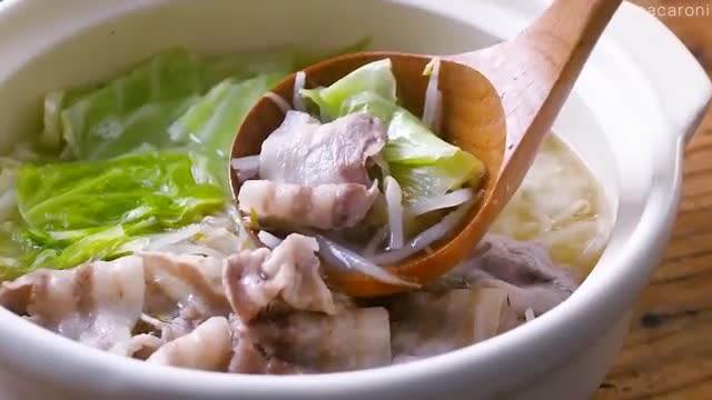 だしも自作で鍋つゆいらず!キャベツともやし、豚バラ肉で節約鍋レシピ♪