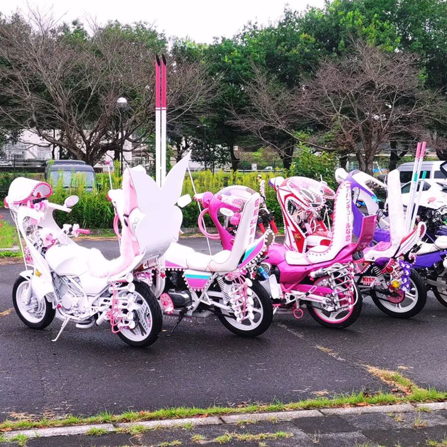 ボソズクバイクの最大の特徴は、その派手なデザインと誇張されたパーツです。特にこのバイクでは、白とピンクのトリコロールカラー、回転灯、そしてさまざまな装飾が施されています。これらのカスタマイズは、ライダーが自分の個性を主張するための手段であり、バイク自体が「自己表現」の一部となっているのです。
