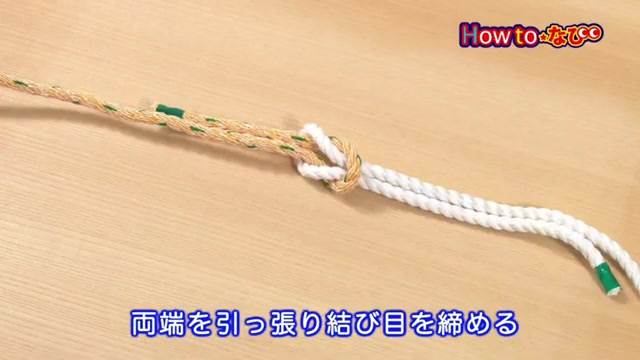 まずは、ロープ同士を確実につなぎたいときに使う「本結び」。新聞を束ねたり、短いロープを一本に繋ぐときに最適だ。