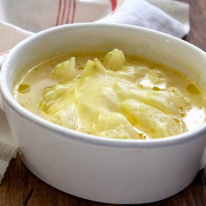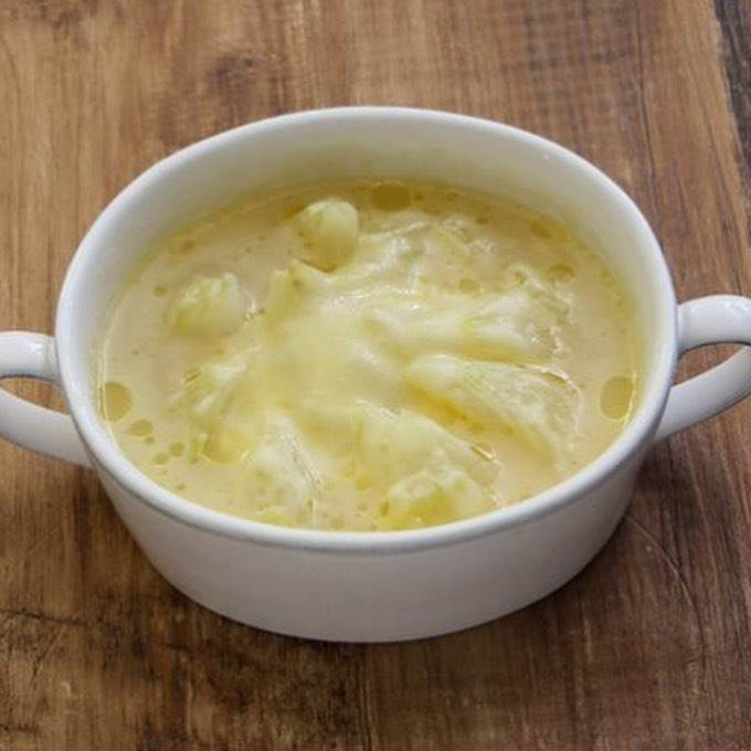 チーズをトッピング スープの上にとろけるチーズをのせ、ラップをして600Wのレンジで1〜2分加熱し、チーズが溶けたら完成です。