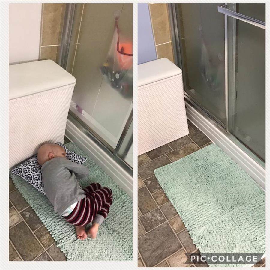 バスルームの入り口で横になりました。