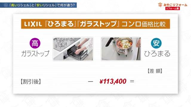 価格を比較すると、安いモデルのコンロは約11万円、高価なモデルのコンロは約24万円と、13万円もの差があります。この機能性の違いが価格差を生む要因の一つです。