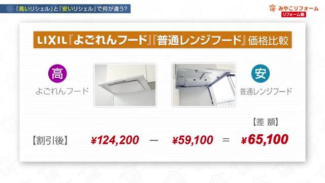 レンジフード(換気扇)の性能差も見逃せません。安いモデルのレンジフードはフィルター式で、油汚れがたまりやすく掃除の手間がかかります。一方、高価なモデルでは「オイルプラッシャー」機能が搭載されており、油汚れを内部に溜め込むことなく排出する仕組みになっています。この違いが、日々のメンテナンス性に大きな差を生み出します。
