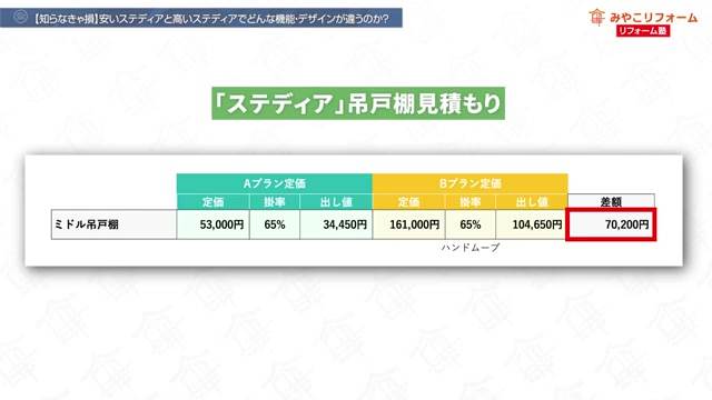 リフォームのプロが選ぶ人気のキッチン「ステディア」。価格帯が幅広く、同じブランドでも安いモデルと高いモデルでは100万円以上の差が生じることもあります。この記事では、具体的に何が違うのかを分かりやすく解説します!